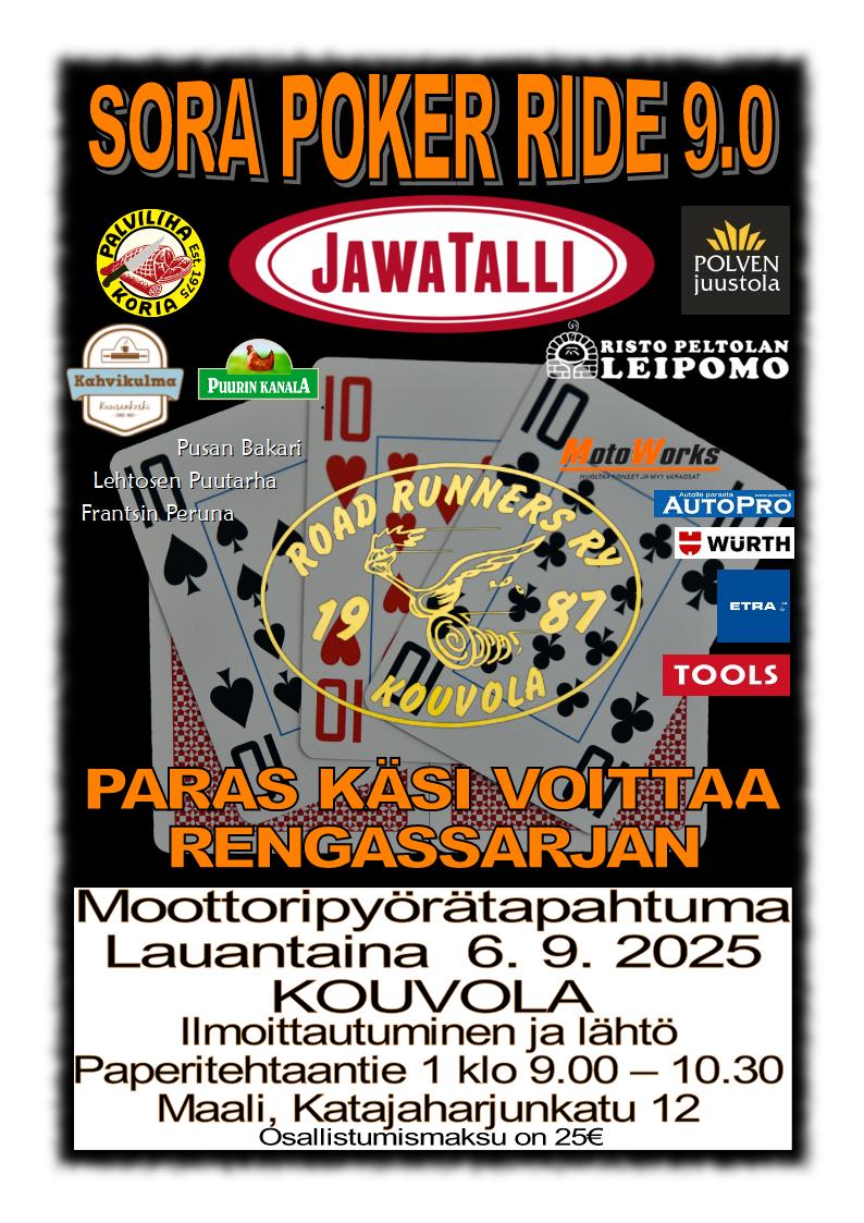 RRK SORA POKER RIDE EI OLE aika-ajo tai ralli, nopea ja turvaton ajaminen ei tuo mitään lisäarvoa!